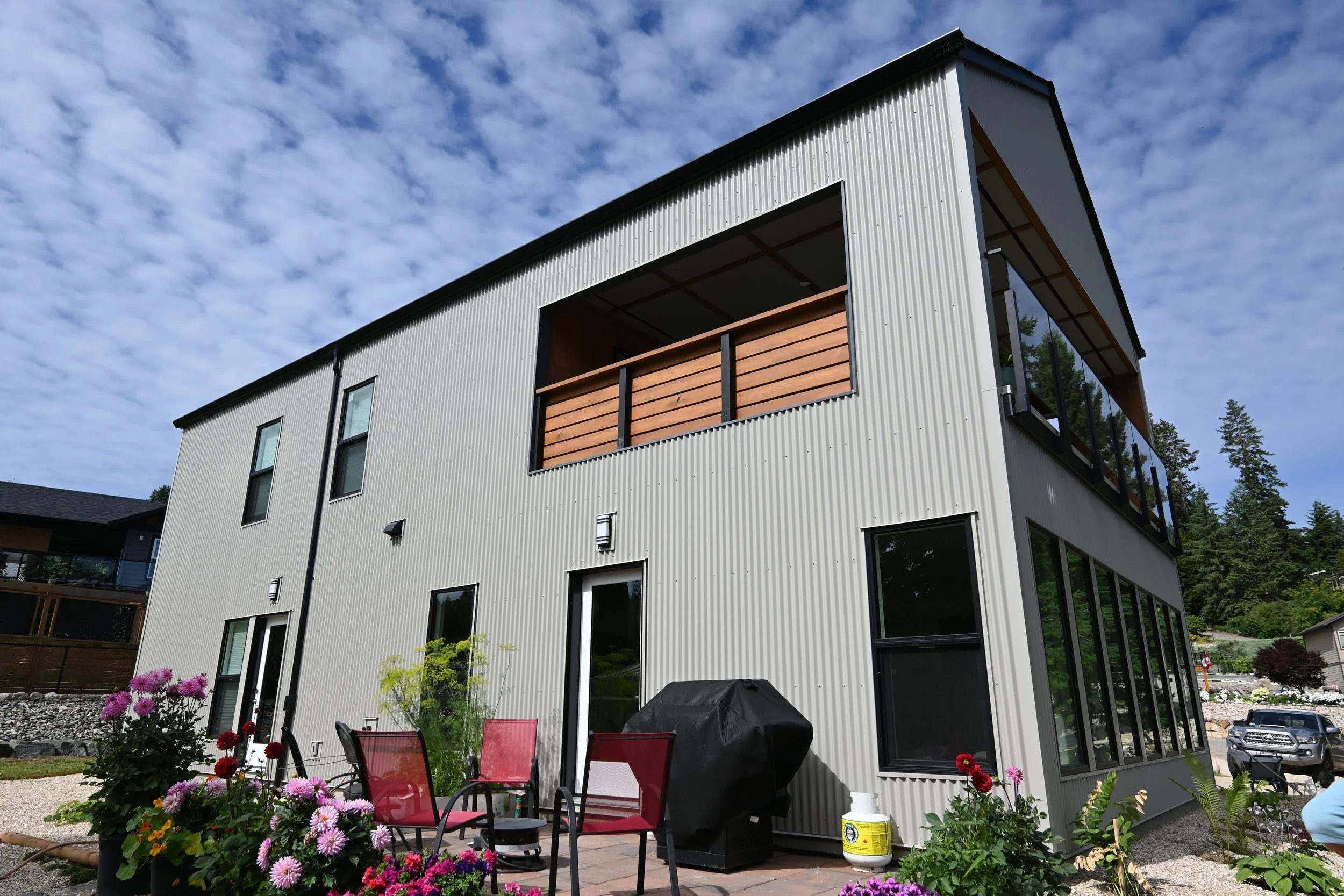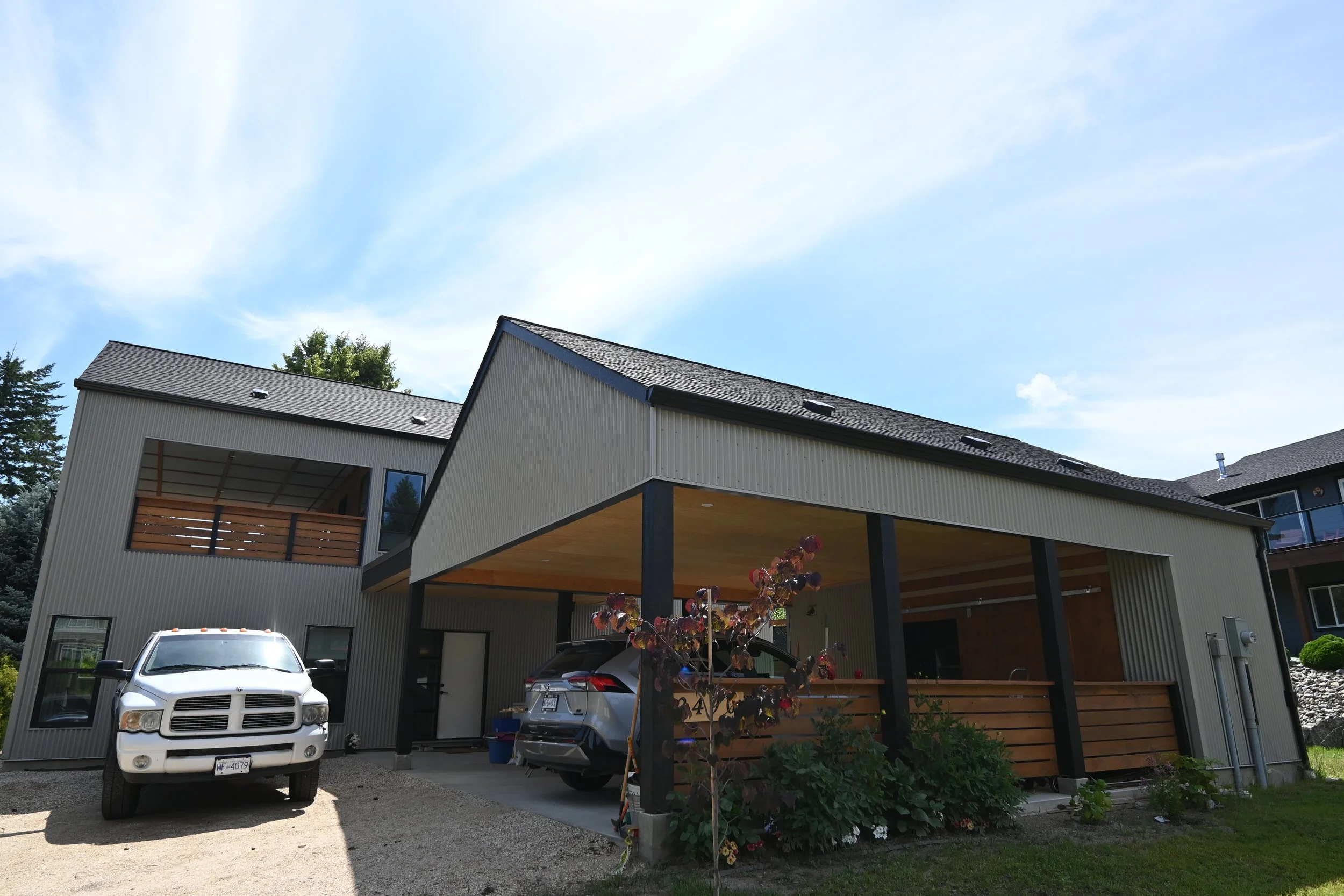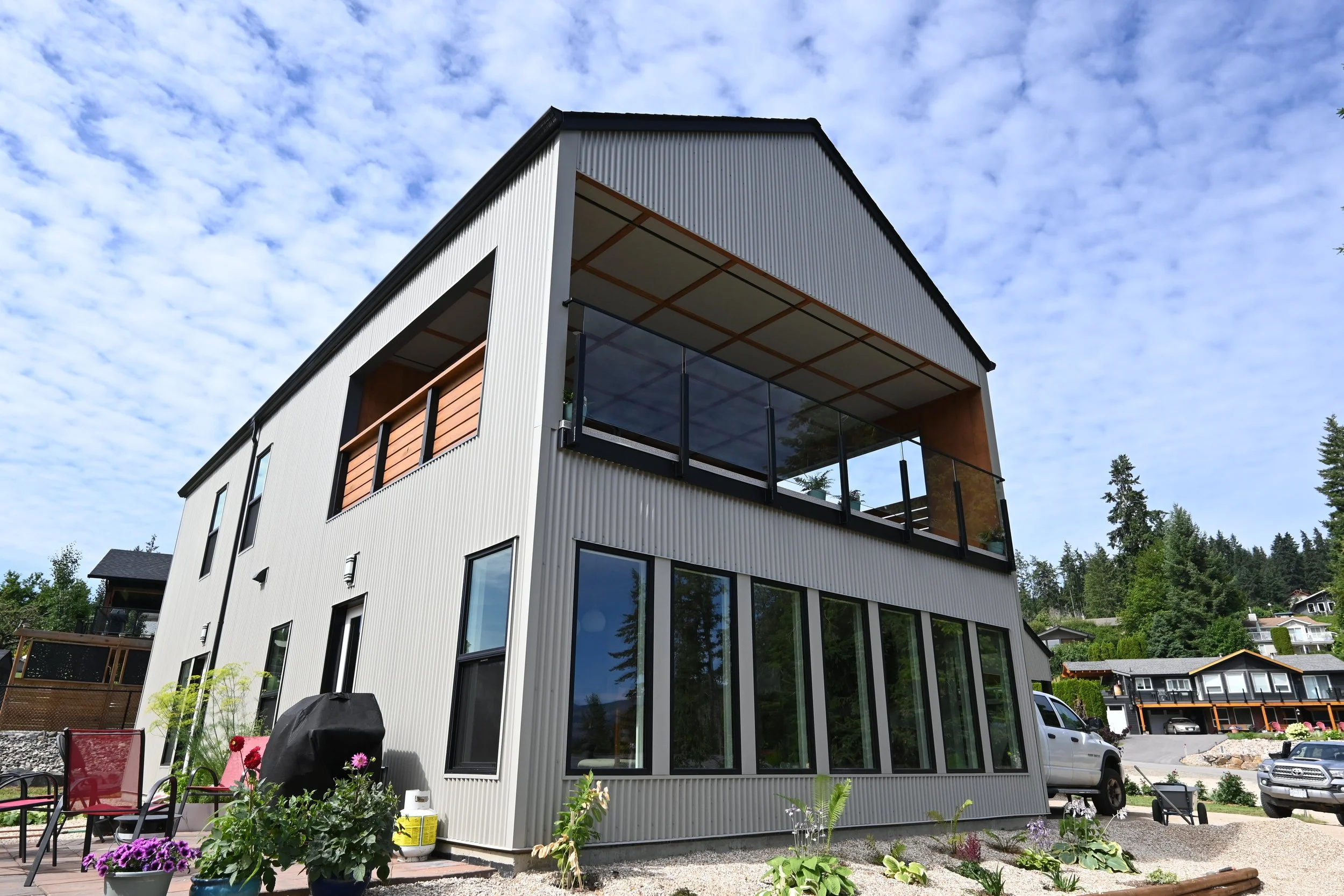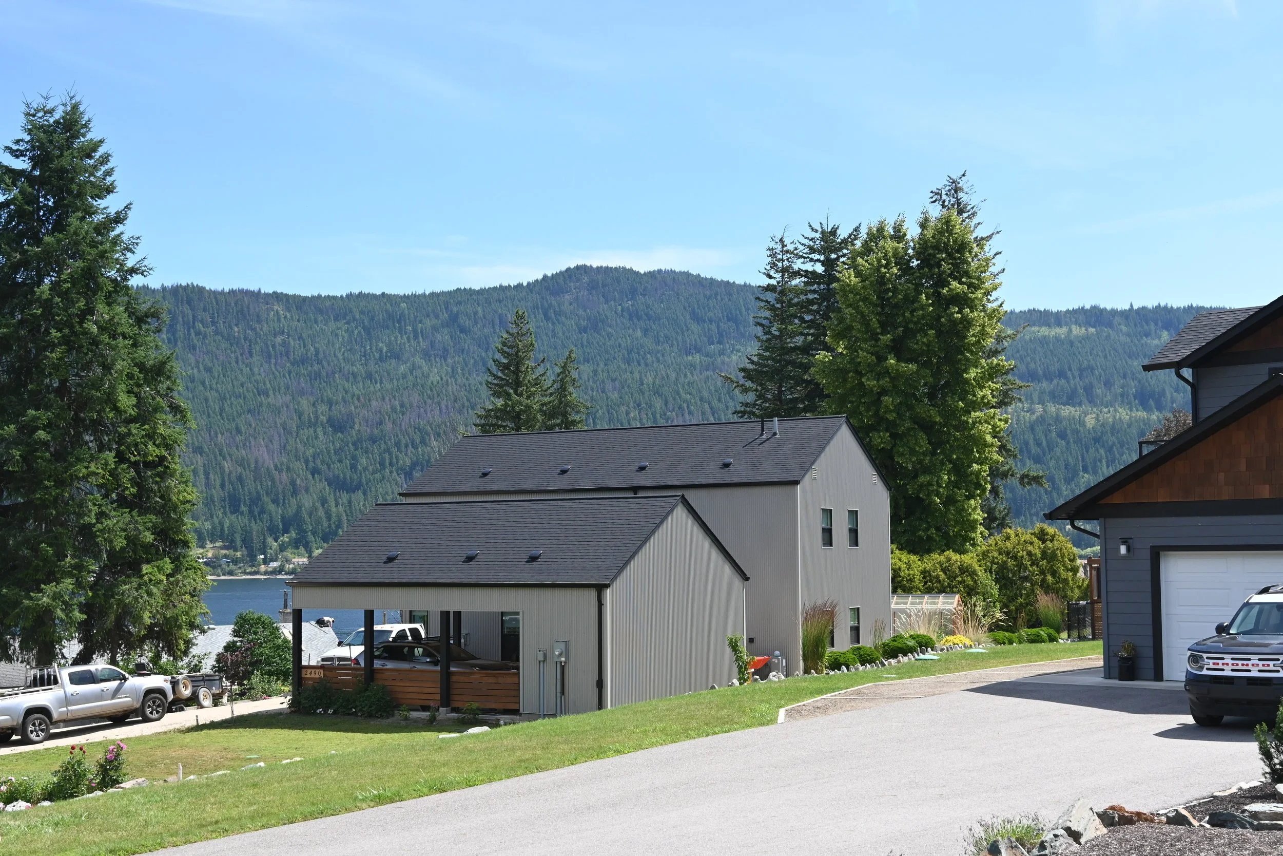 Infill lot in Blind Bay near the waterfront. Modest in size and modern in design. Includes a carport with an attached storage shed and a covered second floor patio with views of Shuswap Lake.